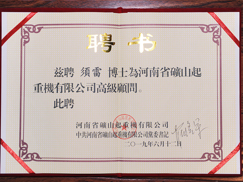河南礦山聘任起重行業(yè)專家、工學(xué)博士須雷先生為公司高級顧問!